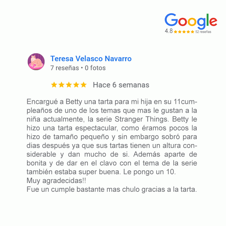 «En Betty’s Cakes no solo hacemos tartas. Creamos momentos únicos, emociones y recuerdos dulces que tu y tus invitados nunca olvidarás»